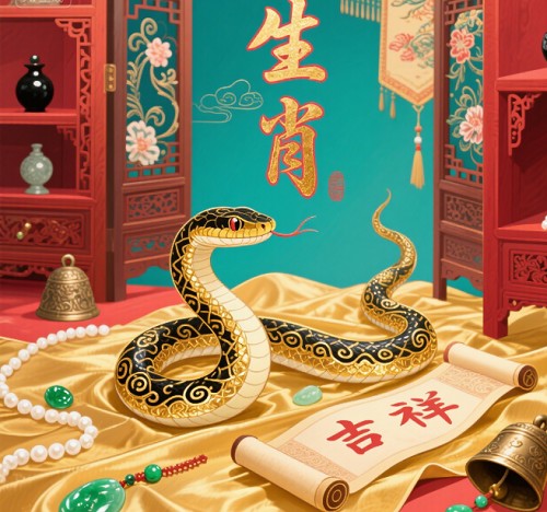 生肖蛇,神秘而富有韧性,"吆五喝六"中的"喝"可能象征着蛇无声的游动,无声胜有声,蛇的隐秘与"吆喝"中的静谧相呼应,展现了生肖蛇独特而深沉的魅力。